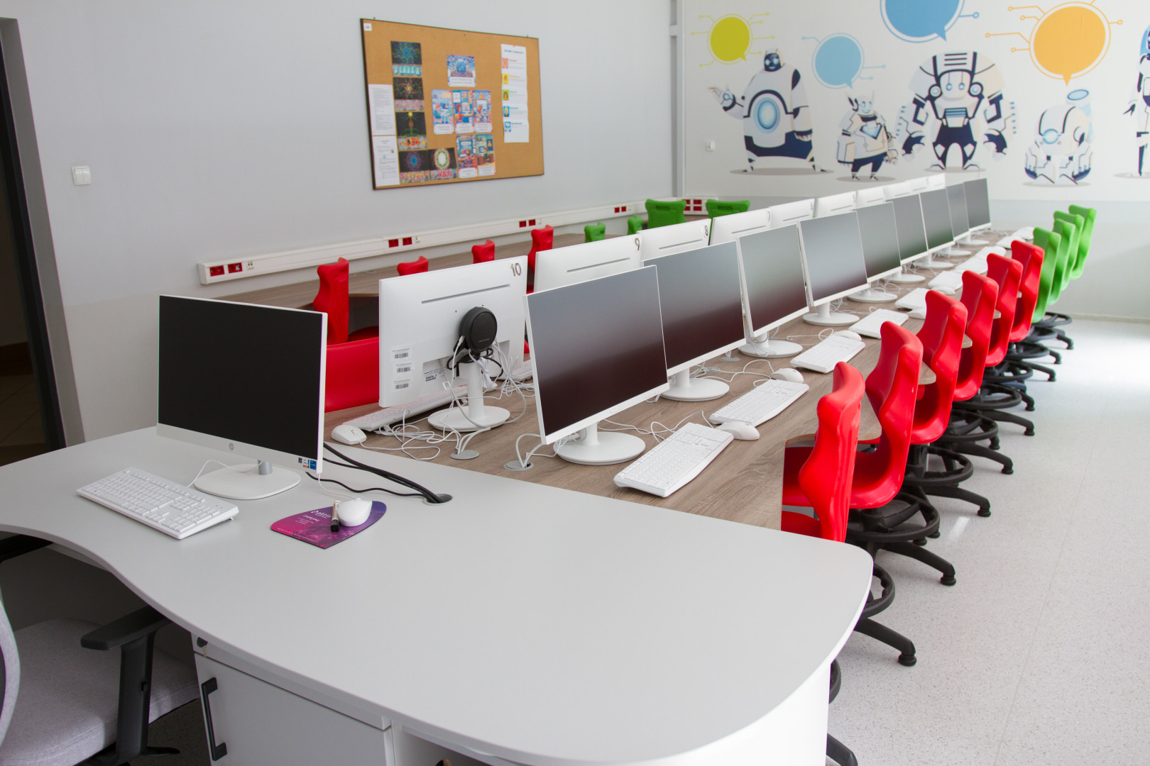 Zgodnie z projektem zmodernizowana pracownia komputerowa dla uczniów klas 1-3 została wyposażona w 28 stanowisk uczniowskich z terminalami komputerowymi podłączonymi do wspólnego serwera, komputer nauczyciela oraz umeblowana. W ramach umeblowania pracowni zakupione zostały: szafa, biurko nauczyciela, stoliki pod terminale i ergonomiczne krzesła z regulacją wysokości i podnóżkami oraz dodatkowe ławki i krzesła w celu prowadzenia innych zajęć przedmiotowych. Ponadto zakupiono wielofunkcyjną kserokopiarkę oraz wieczyste licencje oprogramowania Microsoft Office zarówno do nowej pracowni komputerowej jak i do już istniejącej dla uczniów klas starszych. Dodatkowo na ścianie zamontowano fototapetę tematyczną.